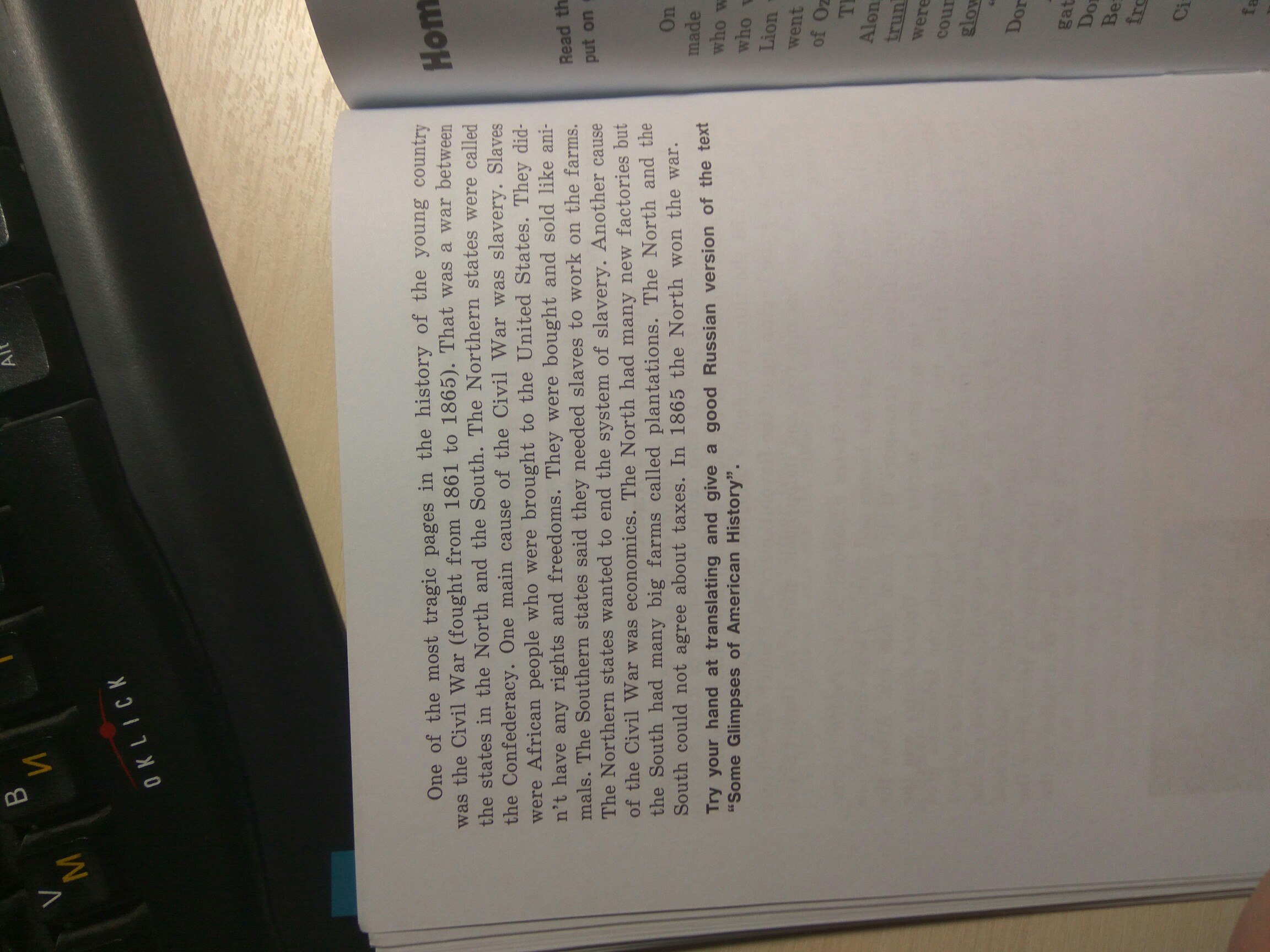 Одна из самых трагических страниц в истории молодой страны была гражданской войны (воевал с 1861 по 1865 г.). Это была война между привет государствами Севера и Юга. Северные штаты назывались Конфедерацию. Одной из главных причин гражданской войны было рабство. Рабы были африканские люди, которые были доставлены в Соединенные Штаты. Они не имеют никаких прав и свобод. Они были куплены и проданы как животные .- южные штаты сказали, что им необходимы рабы для работы на фермах. Северные штаты хотели закончить систему рабства. Другой причиной гражданской войны была экономика. На севере было построено много новых заводов, но на Юге было много крупных ферм называемые плантации. Север и Юг не смогли договориться о налогах. В 1865 году Северный выиграл войну .
