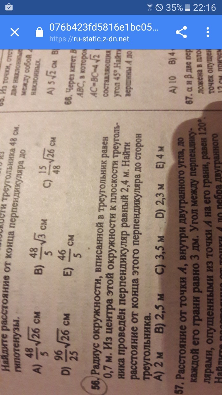 r = АО = ОВ = ОС = 0,7 м., где точки А,В,С — точки касания сторон треугольника с окружностью.