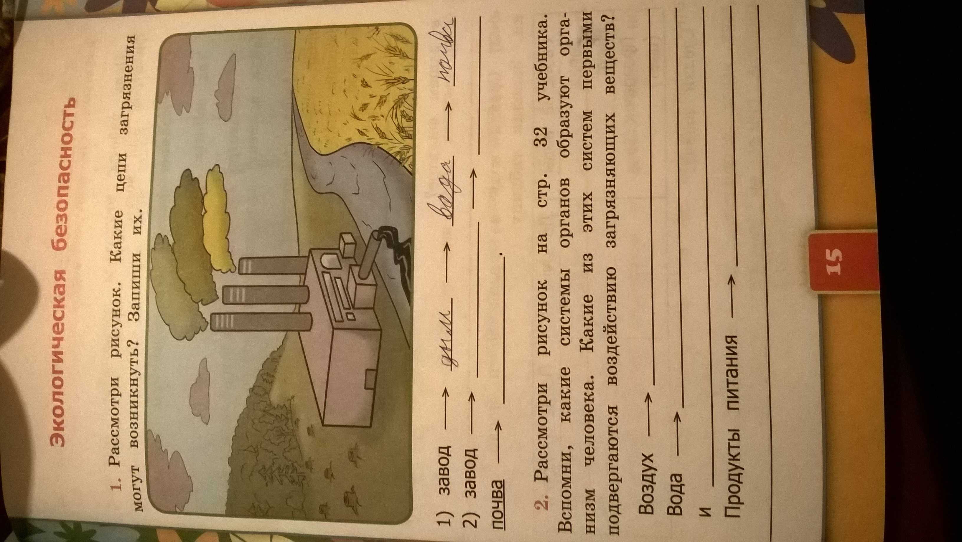 2) завод - дым - воздух