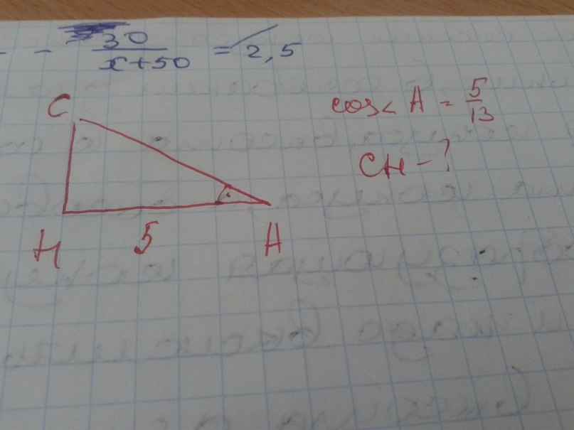 CosA=AH/AC ⇒ AC=AH/CosA = 5 / (5/13) = 13