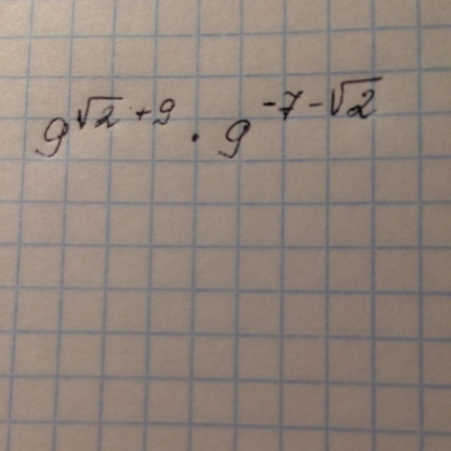 9^{ sqrt{2}+9 } * 9^{-7- sqrt{2} } = 9^{ sqrt{2}+9+(-7- sqrt{2} ) } = 9^{2} =81