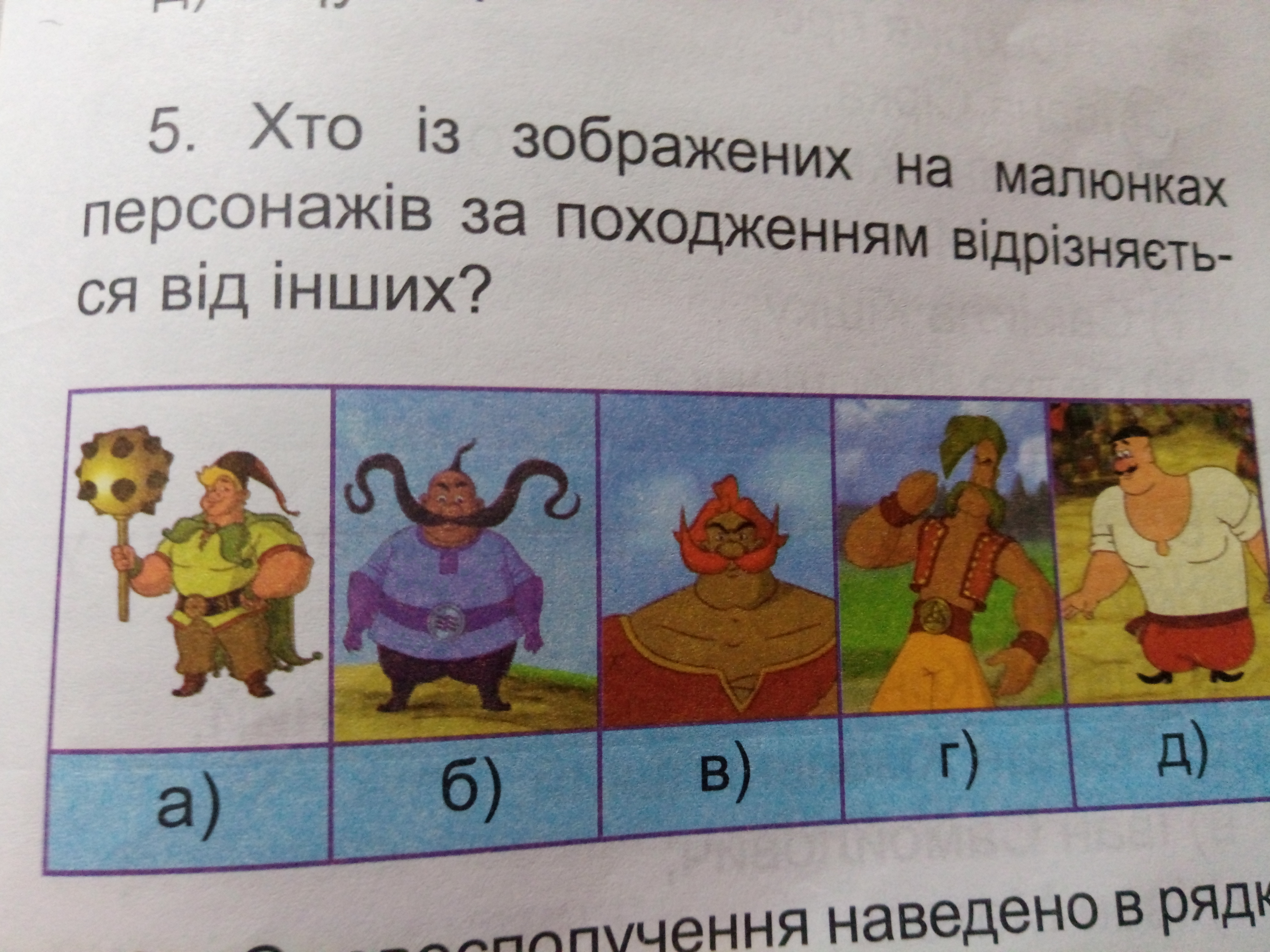 хто із зображених на малюнках персонажів за походженням відрізняється від інших