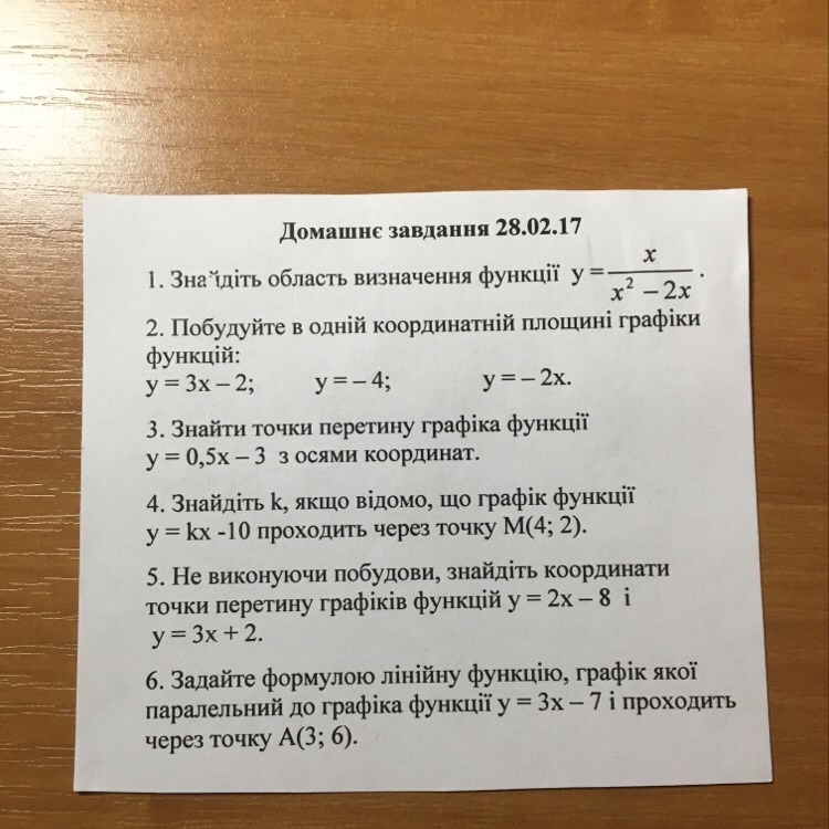 5. Не выполняя построения, найдите координаты точки пересечения графиков функций у=2х-8 и y=3x+ 2. 6. Задайте формулой линейную функцию, график которой параллелен графику функции y=3x-7 и проходит через точку А (3;6 ).