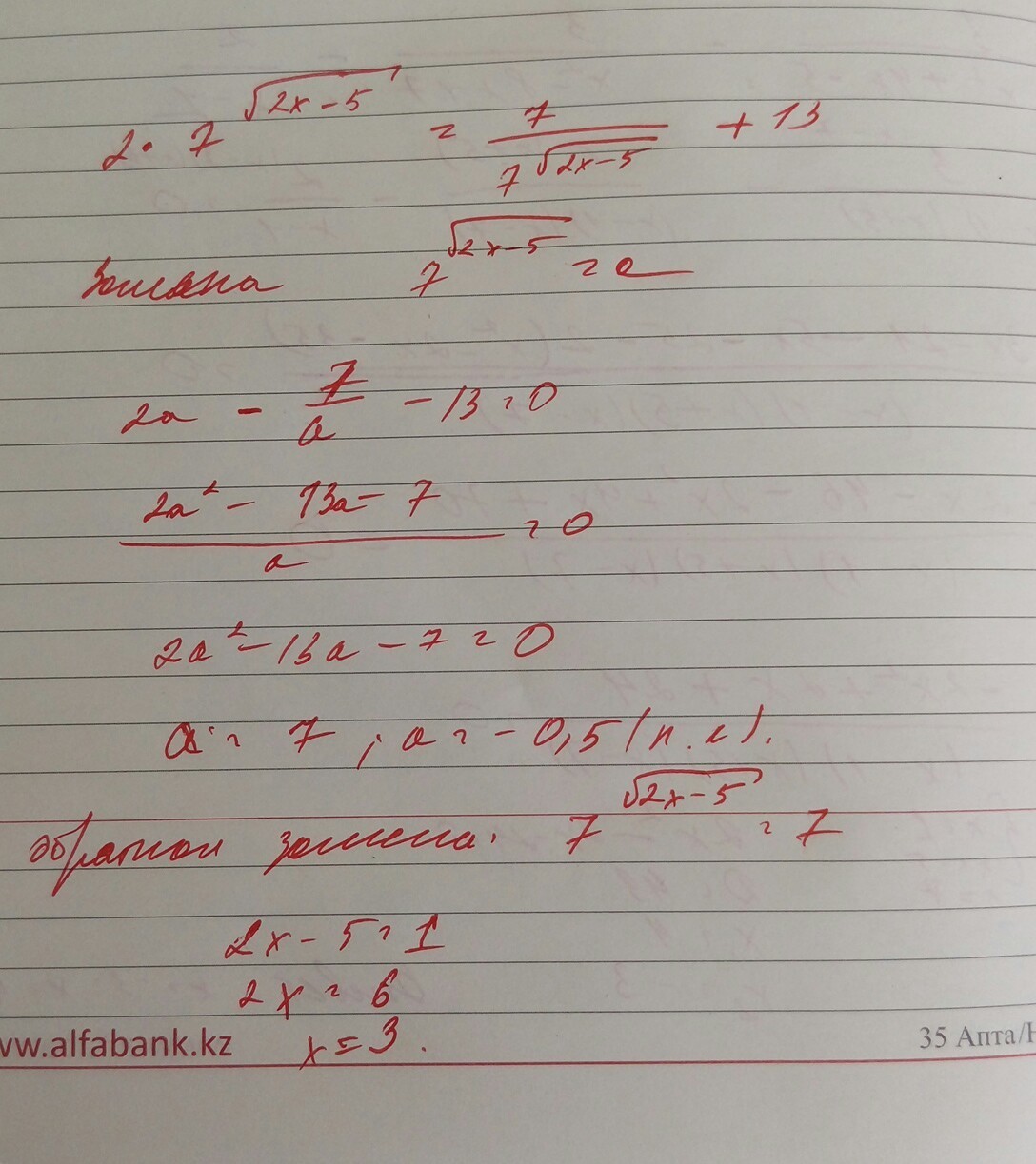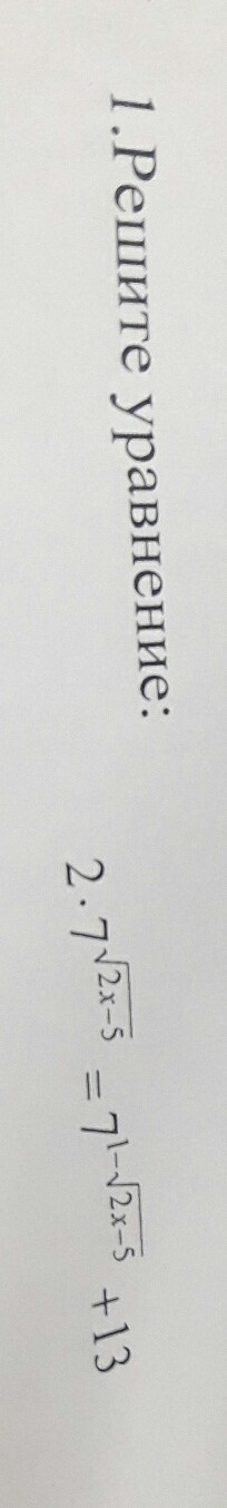 2*7^(√2x-5)=7/ 7^(√2x-5)+13 замена 7^(√2x-5)=а ОДЗ 2x-5>0 x>2,5