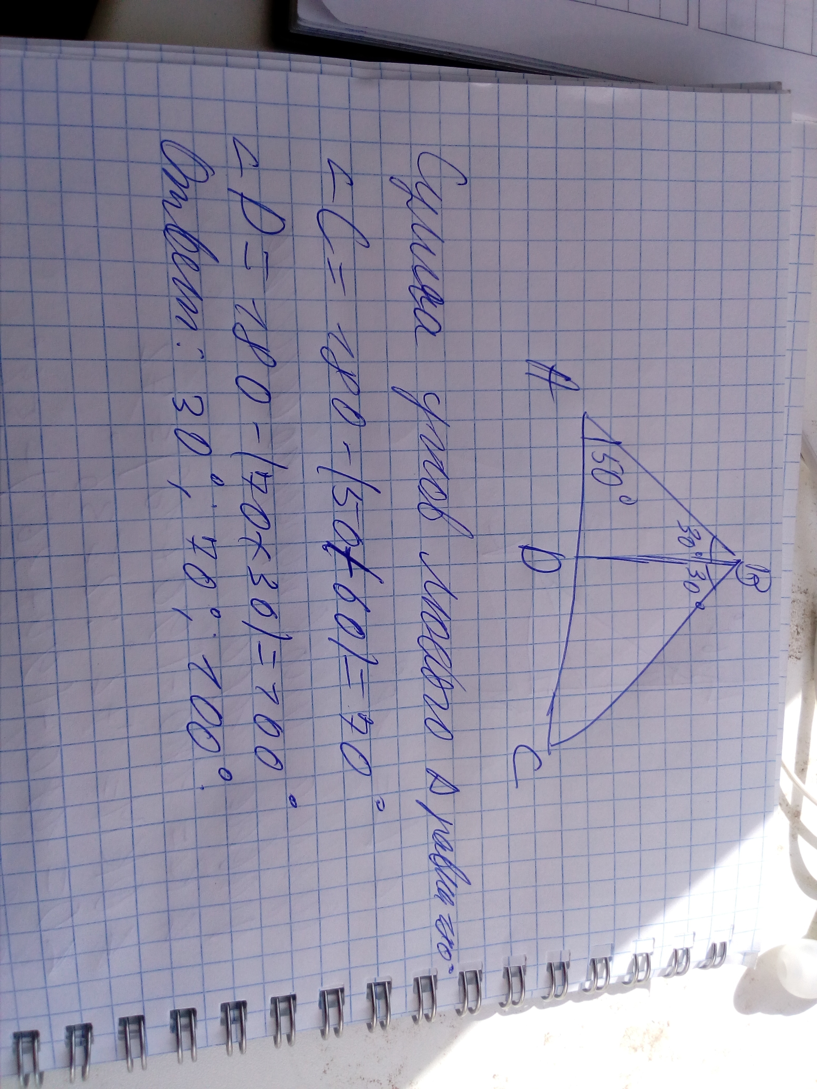 в треугольнике АВС проведена биссектриса BD. угол А=50°, угол В=60°. Найдите углы треугольника CBD