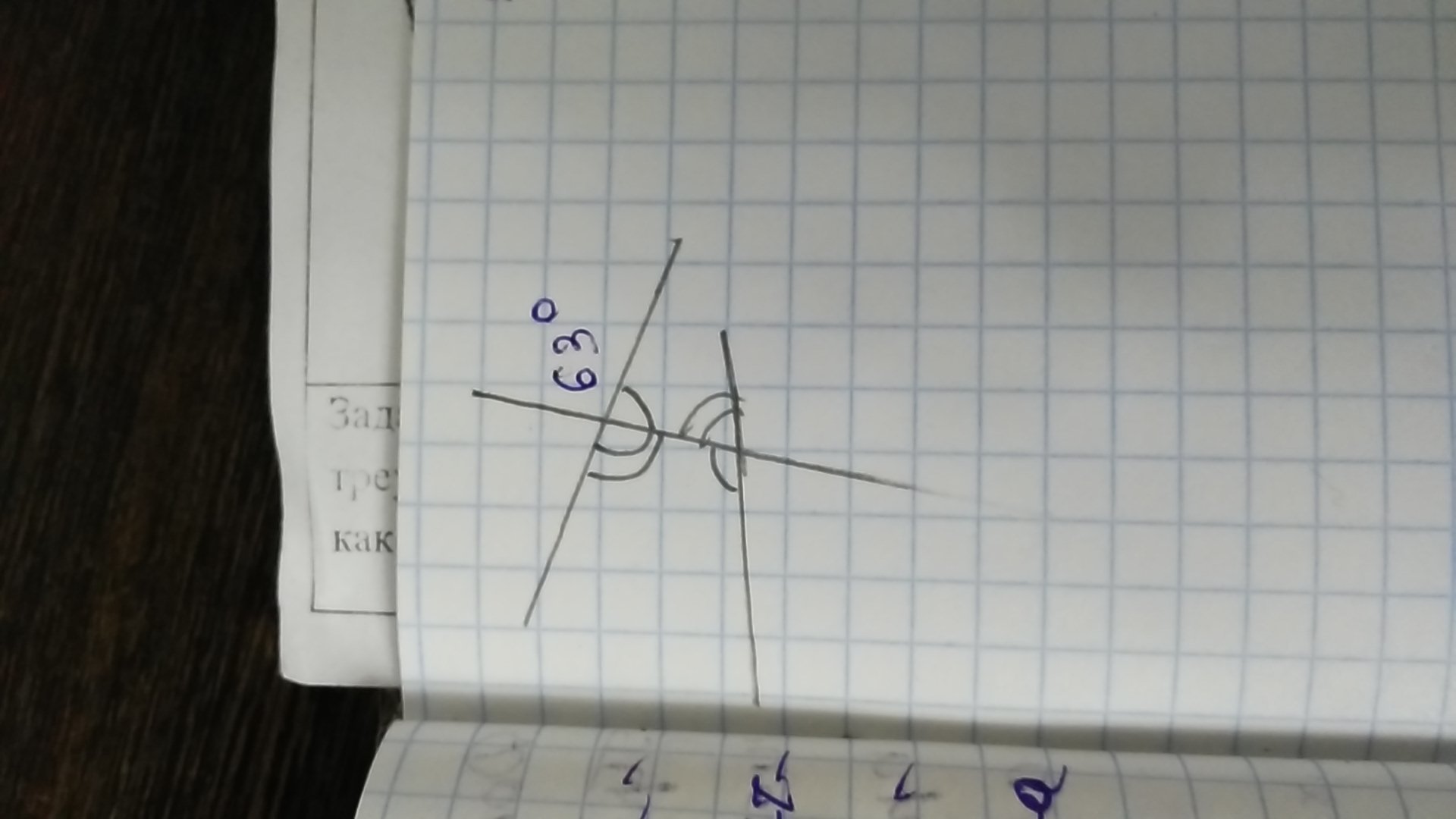 думаю здесь будет так вертикальные углы всегда равные здесь 63 противоположный угол будет тоже 63 второй угол будет 180-63=117 думаю так.