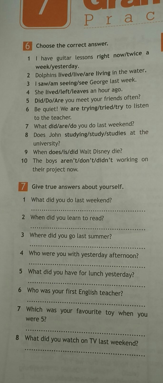 6. My first english teacher was ( имя учителя )