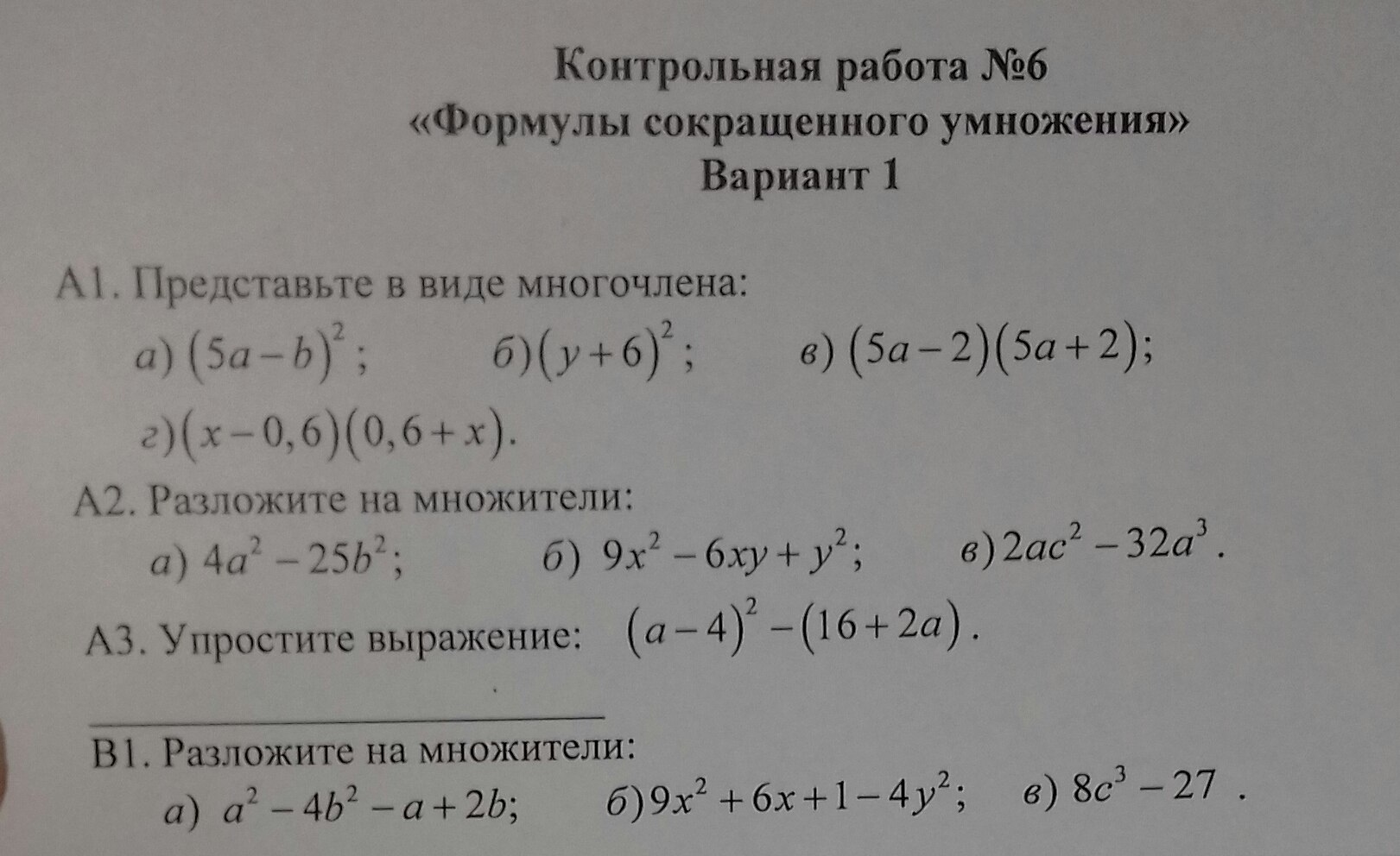 а)а*2-2*2в*2-а+2в в)3*3х*2+6х+1-2*2у*2 с)2*3с*3-27