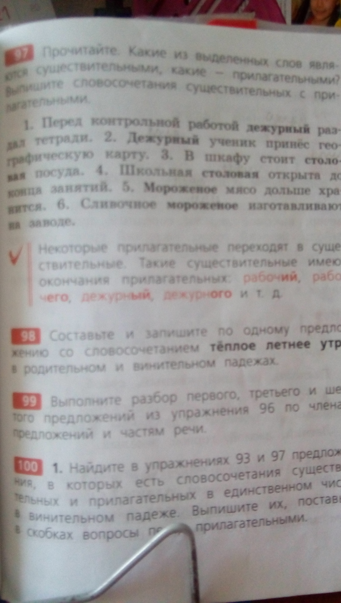 Прочитайте Какие из выделенных слов являются существительные Какие прилагательные Выпишите словосочетания существительных с прилагательными. Упр. 97