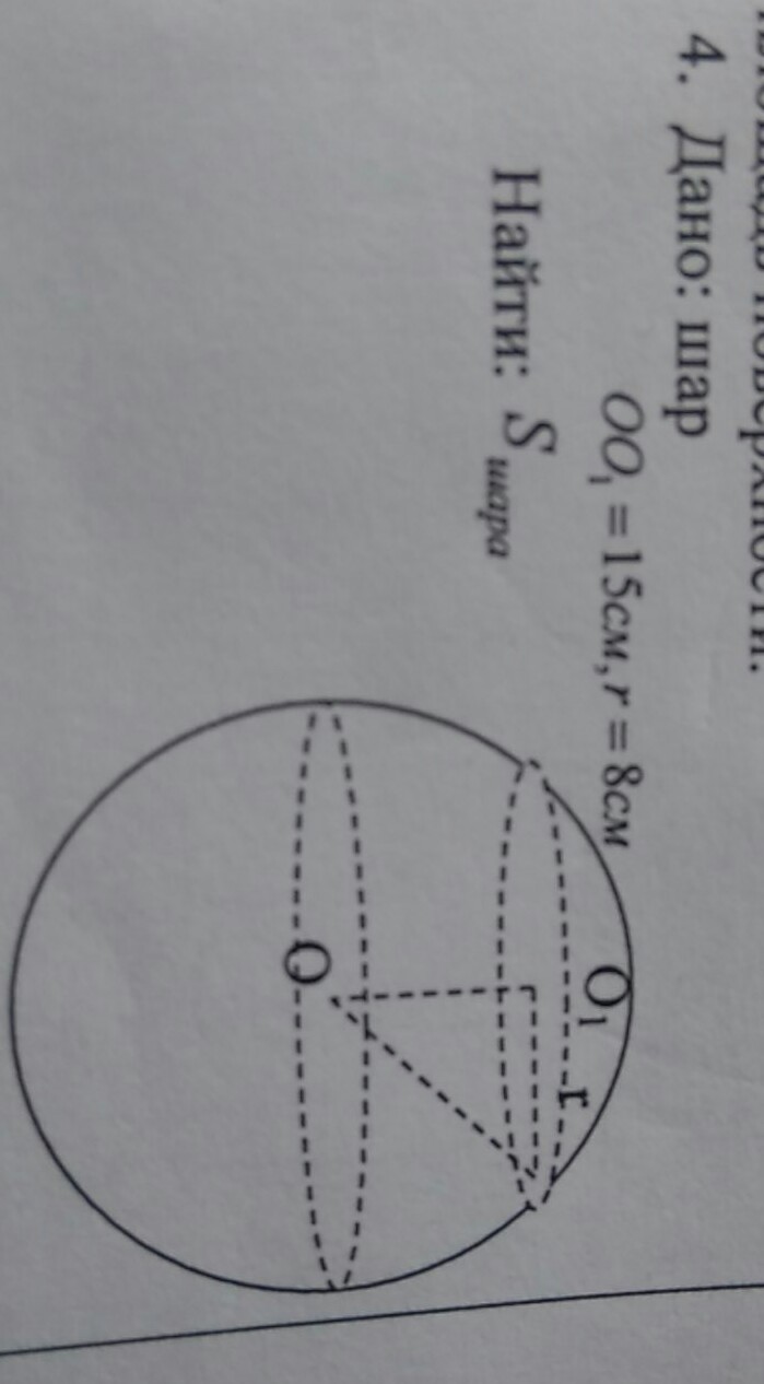 находим радиус шара, по формуле прямоуг треугольника квадрат гипотенузы = сумме квадратов катетов.