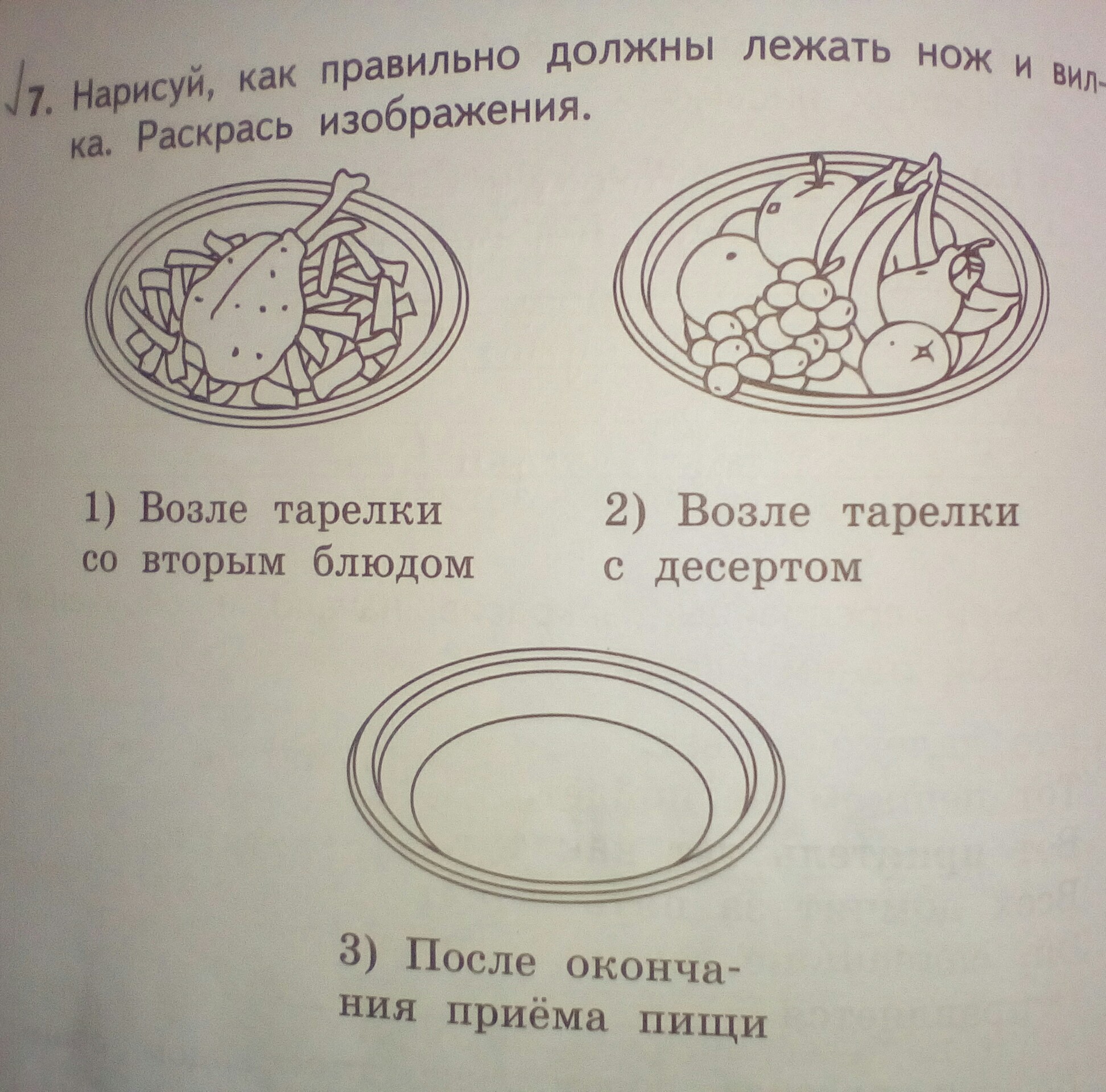После окончания приема пищи, в тарелке, или рядом на салфетке