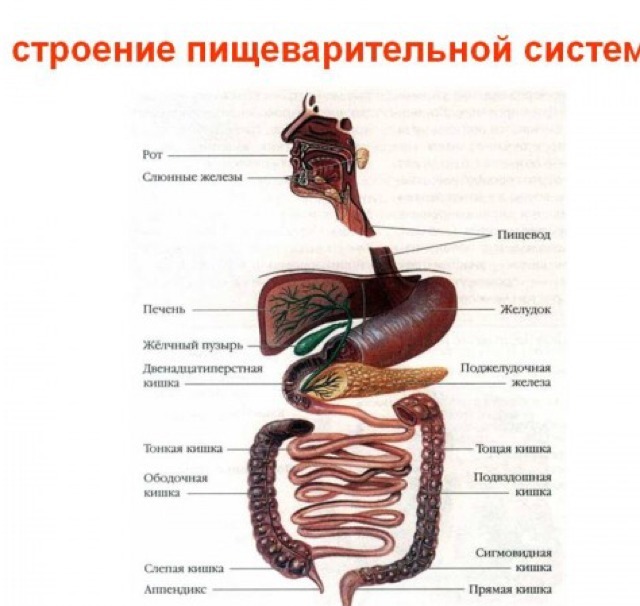 В толстой кишке заканчивается переваривание пищи. Она начинается в грудной клетке, переходит в полость живота и опускается в малый таз. Ее длина 1-1,7 м, просвет 4 - 8 см. Заканчивается анусом — наружным отверстием для выделения отработанных шлаков.