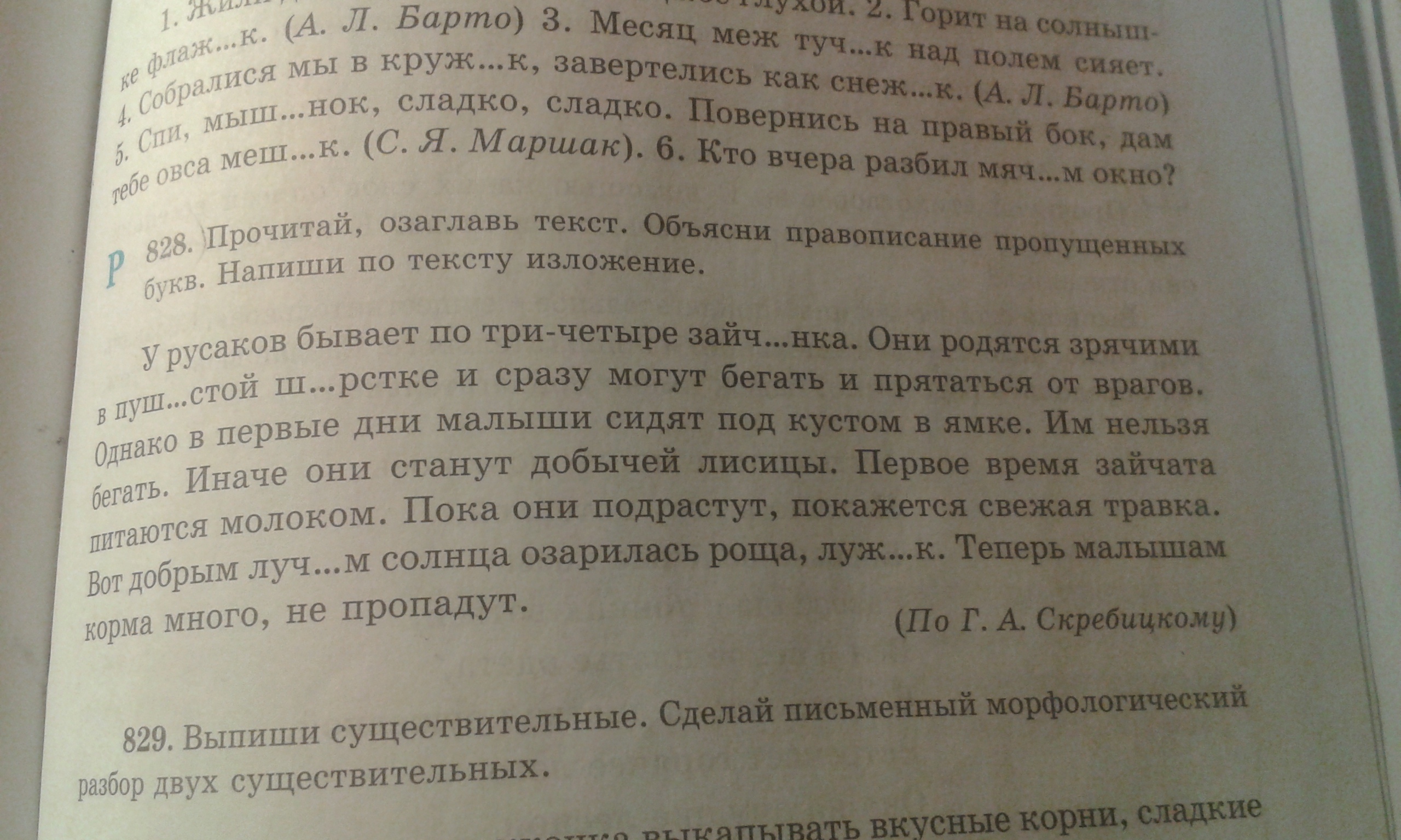 Прочитай,озаглавь текст.Объясни правописание ппопущенных букв.Напиши по тексту изложение.Помогите пожалуйста.Сроочно.Спасибо!!!#828