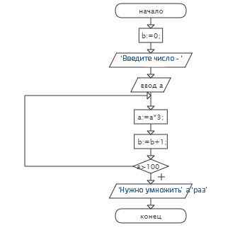 program N3;var b,a:integer;begin b:=0; write('Введите число - ');readln(a); repeat a:=a*3; b:=b+1; until a>100; writeln('Нужно умножить ', b, ' раз');end.