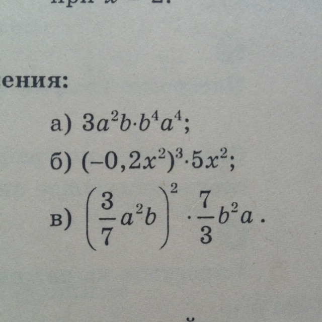 а) 3а^6b5 б)-х^8 в) а^5b^4