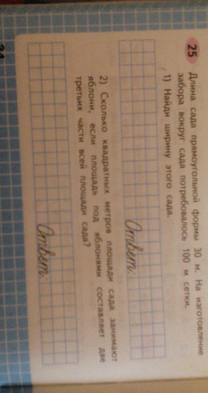 1) 100 - (30+30) = 40 (м) - 2 ширины.