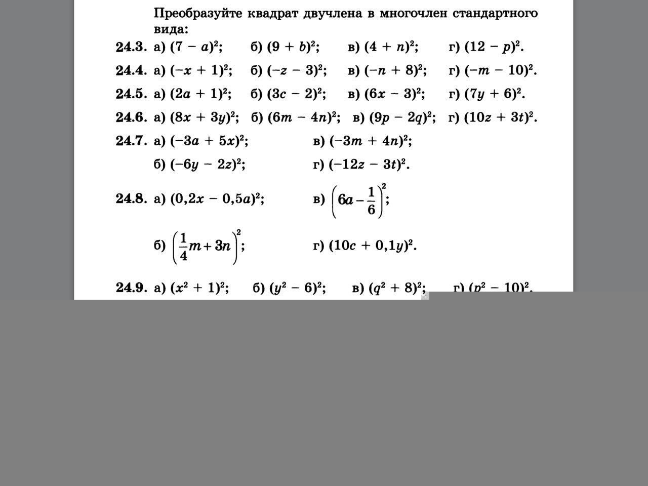 в первом упражнении формула квадратов. (7-а)2=49-14а+а2