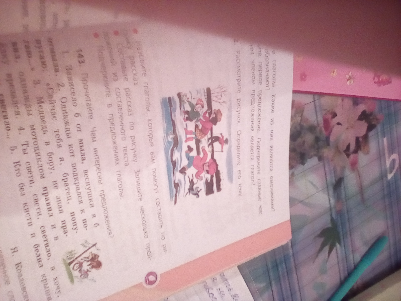 На картинке изображенны дети, которые играют.Видно, то что они играют весной, потому что всё тает.С переди изображён мальчик который бегает с собакой, девочка которая ругает своего братика, а на заднем плане мальчик который катается на лыжах.