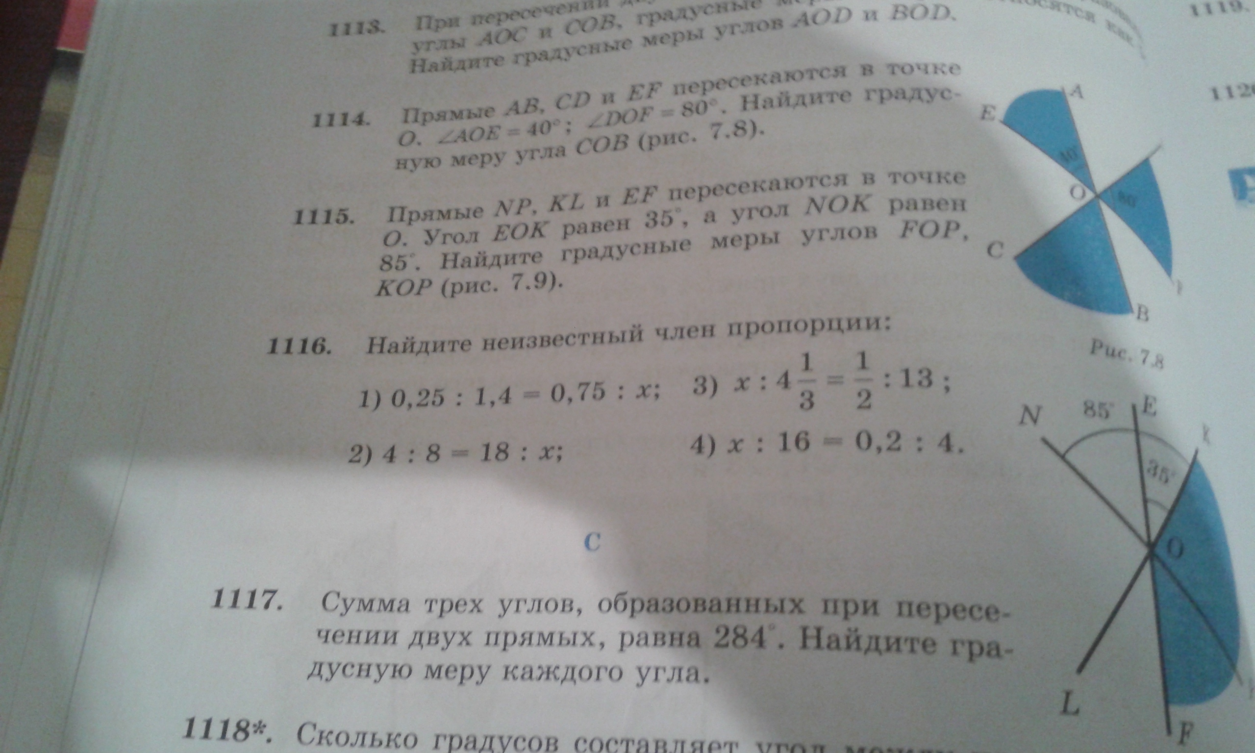 1117. 360-284=76 градусов два угла. 284-76=208 208/2=104 и по 104 градуса два остальных угла
