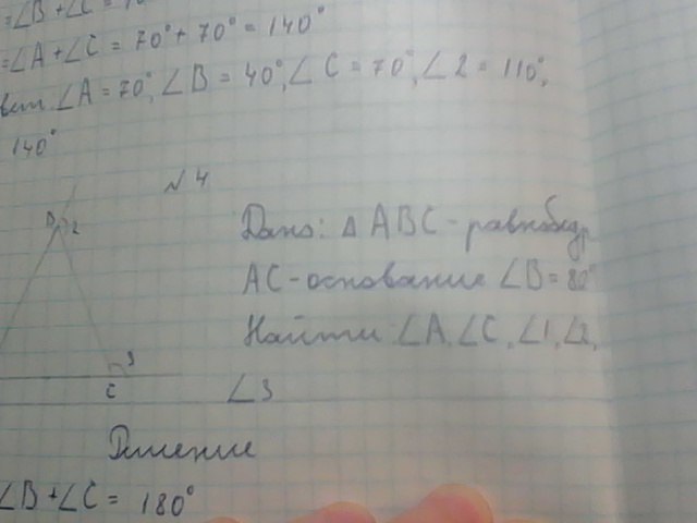 Пожалуйста помогите!!! В равнобедренном треугольнике ABC угол B равен 80 градусам , AC - основание. Найти угол А, угол С, внешний угол А 1, угол В 2 и угол С 3.