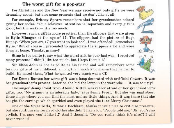 Например, Бритни Спирс вспоминает, что ее бабушка обожала дарить ей носки. «Внимание родственников важно, и каждый подарок хорош, но носки — это слишком».