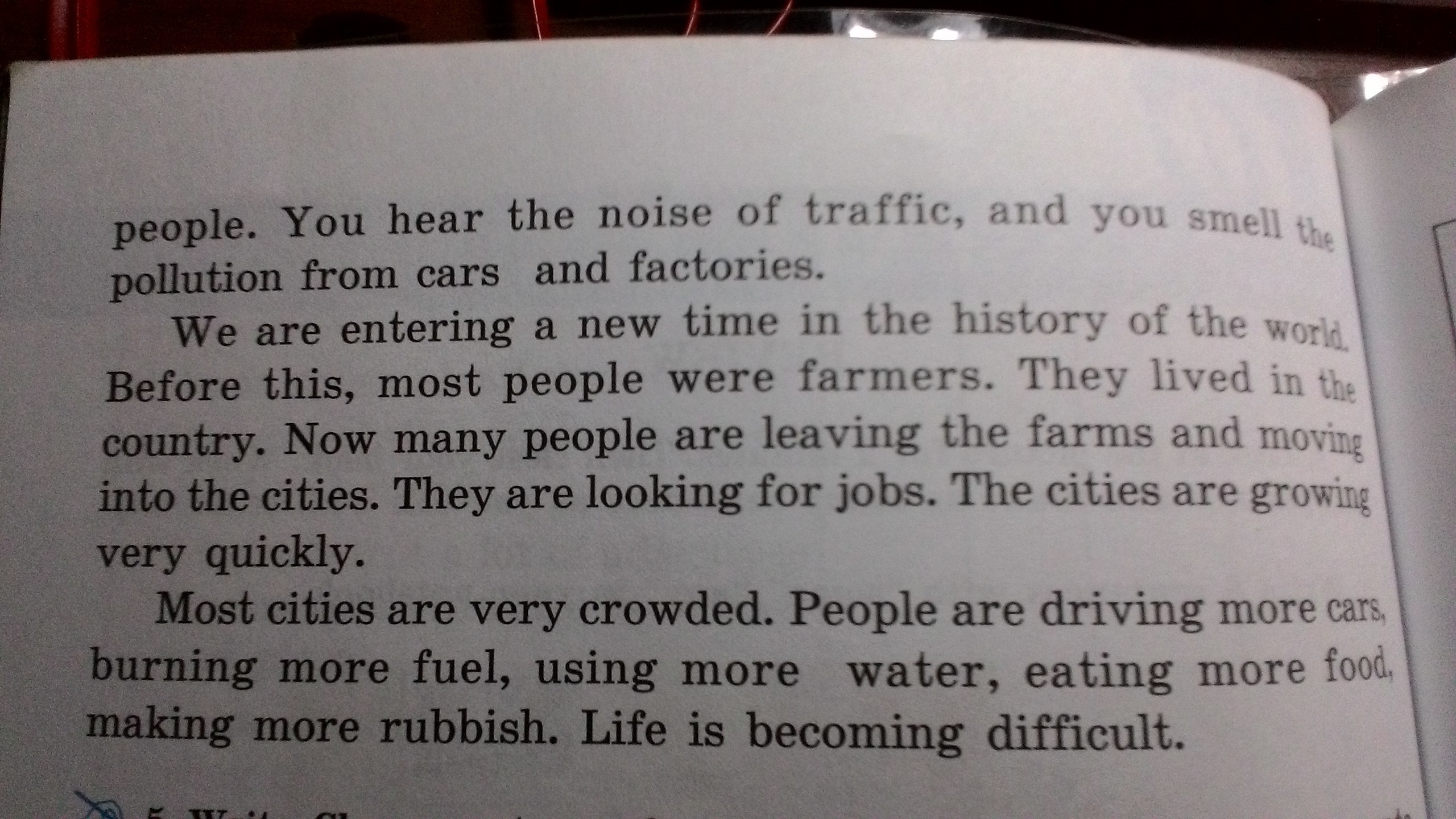 Сейчас мы учим новую историю. До этого, люди были фермерам. Они жили в одной стране. Сейчас многие люди покидают фермы и переезжают в город. Они ищут работу. Города заселяются очень быстро.