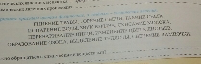 ФИЗИЧЕСКОЕ: ГНИЕНИЕ ТРАВЫ, ТАЯНИЕ СНЕГА, ЗВУК ВЗРЫВА, ПЕРЕВАРИВАНИЕ ПИЩИ, ИЗМЕНЕНИЕ ЦВЕТА ЛИСТЬЕВ, ОБРАЗОВАНИЕ ОЗОНА, СВЕЧЕНИЕ ЛАМПОЧКИ. А ОСТАЛЬНОЕ ХИМИЧЕСКОЕ. Я учусь в 5 классе и то знаю!
