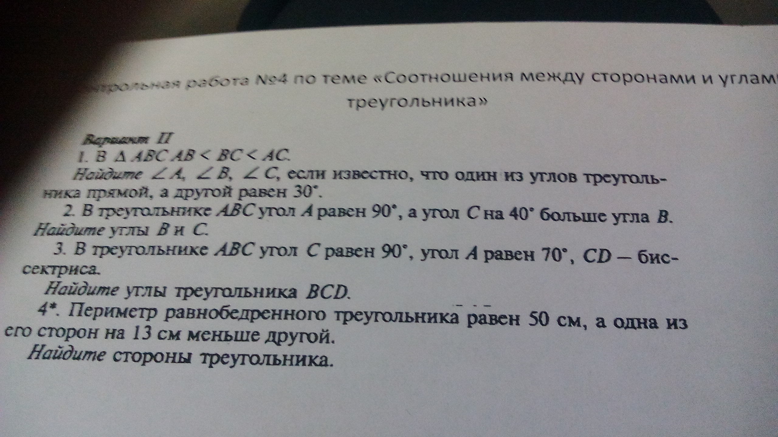1) Прямоугольный треугольник с гипотенузой АС, т.к. сторона АС - больше всех, и значит противолежащий угол В - прямой ( 90 градусов ), угол А - 60 градусов, и угол С - 30 градусов ( просто начерти треугольник, и там будет видно, что угол А больше угла С )
