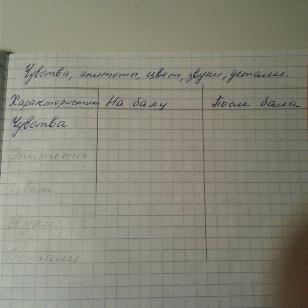 Ребят помогите заполнить таблицу , там где чувства , это чувства Главного героя , повесть После бала.