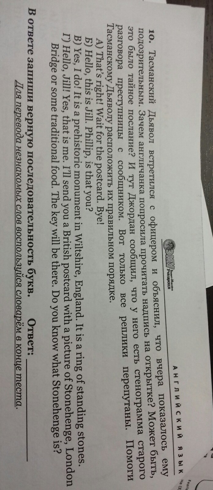 Реплики должны быть в таком порядке: Б, Г, В, А