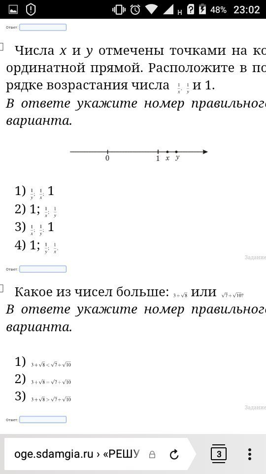 В первом ответ (1) (, по условию у>х, значит 1/у<1/x <1