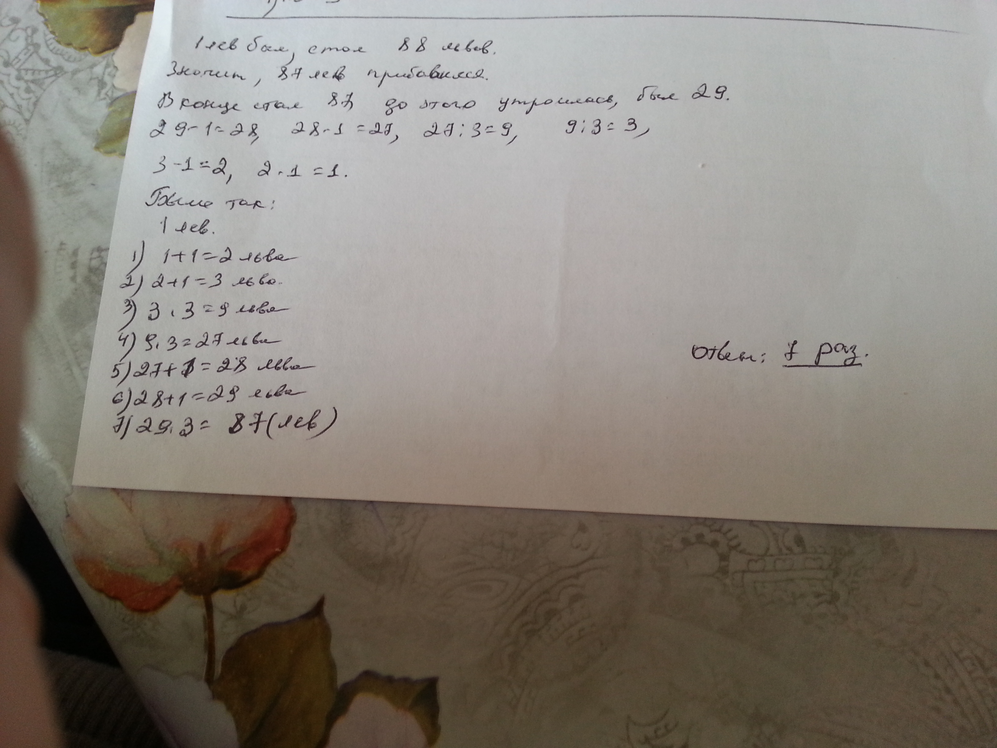 У дрессировщика Вольки есть волшебная палочка и один лев. За один взмах палочки количество львов или удваивается, или утраивается или увеличивается на 1. К концу представления на арене было 88 львов. Какое наименьшее количество раз Волька мог взмахнуть палочкой? В качестве ответа укажите одно целое число.