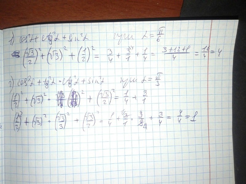 2)cos²a+tg²actg²a+sin²a при a=П/3