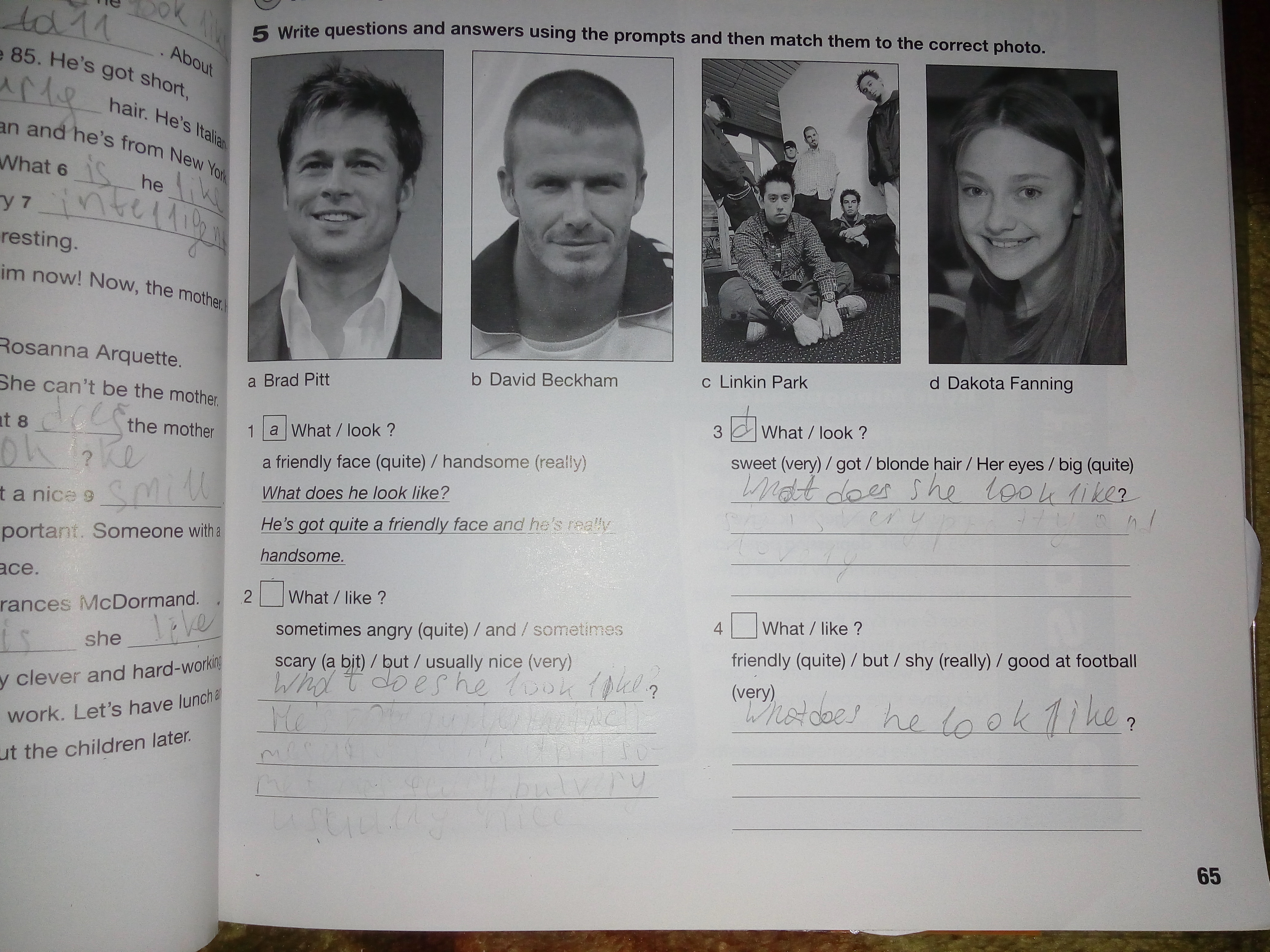 3What does he look like?She is very sweet and she has got blonde hair.Her eyes are quite big.