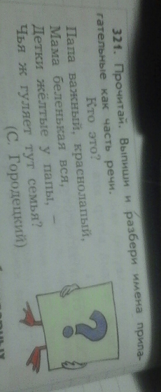 помогите, упражнение ٣٢١(321) , я знаю очень легко, но я не очень умею разбор имена прилагательные как часть речи((((