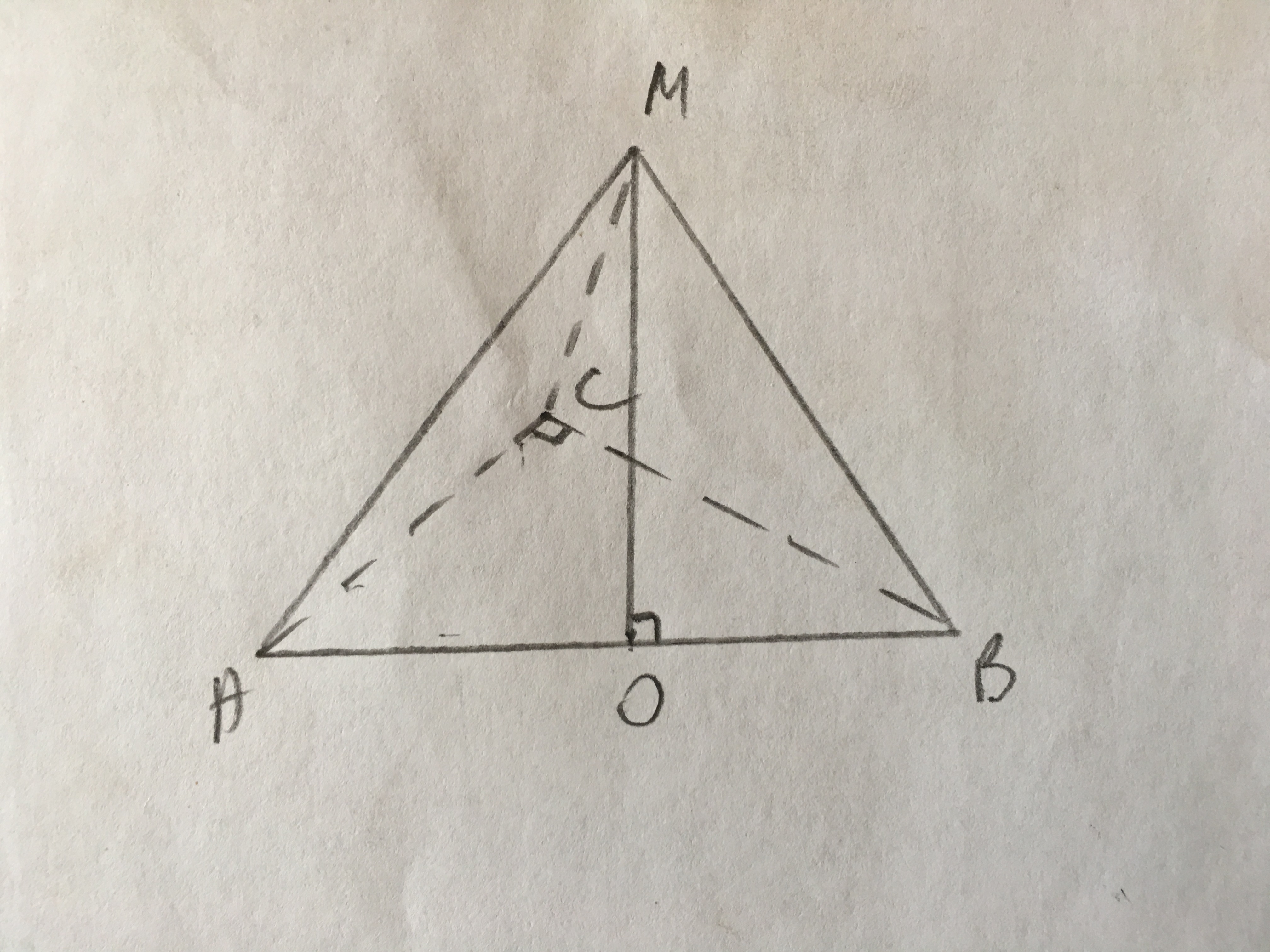В тр-ке АМО МО=√(МА²-АО²)=√(а²-с²/4)=√(4а²-с²)/2