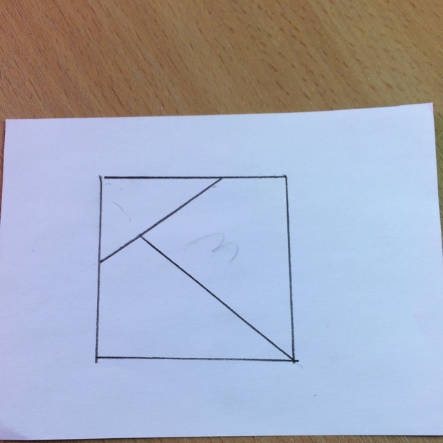 проведите в квадрате 2 отрезка так, чтобы получился прямоугольный треугольник и 2 равных равных четырехугольника. задание на фото