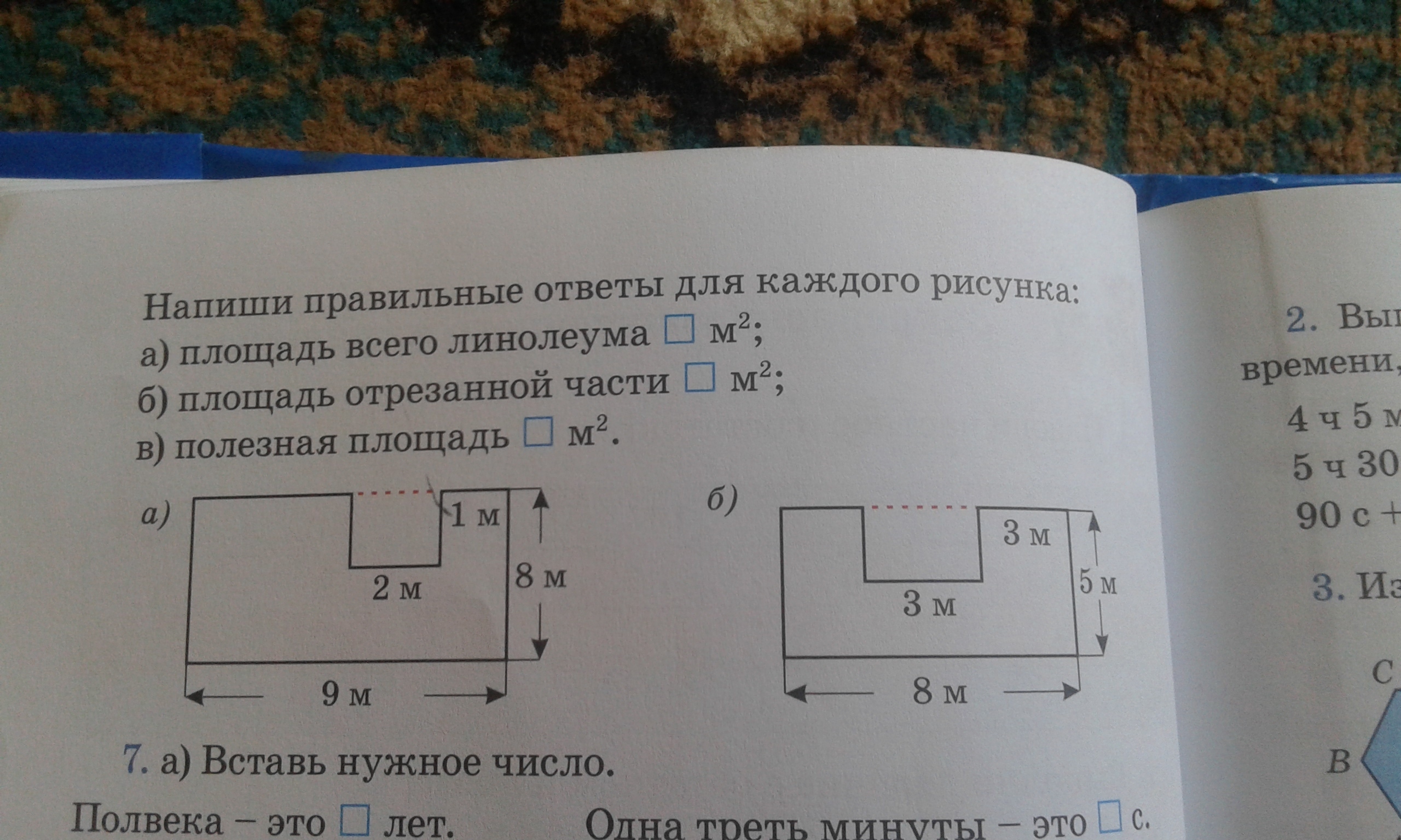 чтобы застелить линолеумом комнаты, рабочему надо купить линолеум площадью, равной площади комнаты, и отрезать от него часть, где выступает балка.