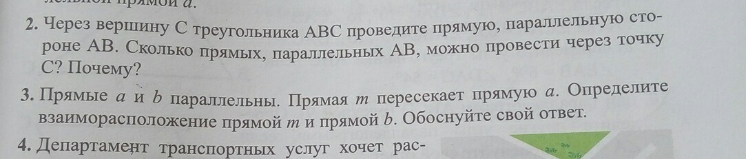 4)по свойству прямых если прямые не перескаются значит они параллельны, но прямая m уже пересекает прямую а, параллельную b, значит m будет пересекать и прямую b