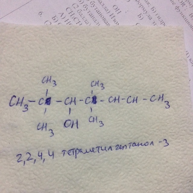 1) a) CH3-(CH3)C(CH3)-CH(OH)-(CH3)C(CH3)-CH2-CH2-CH3