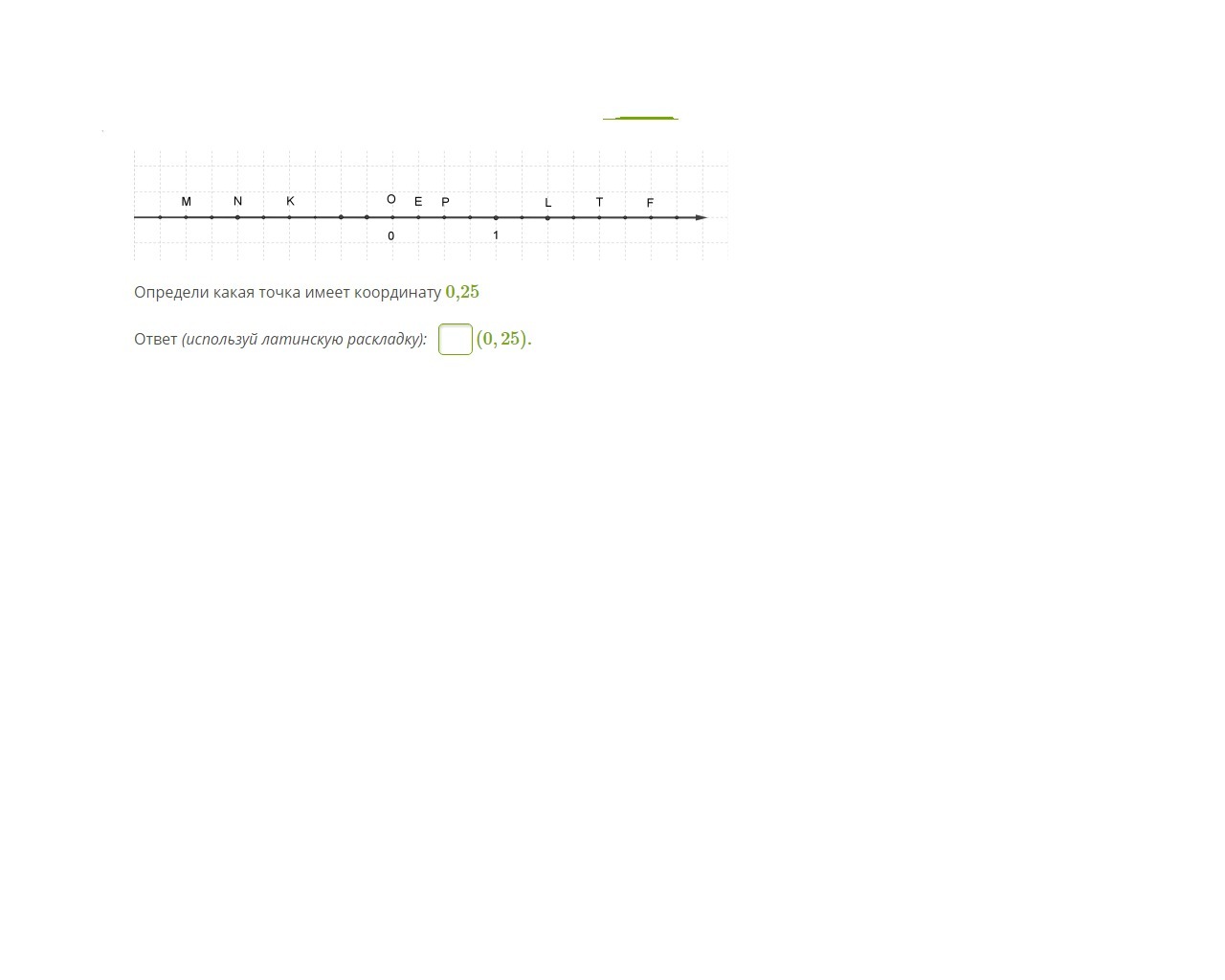 Точка Е, т.к. единичный отрезок 4 клетки, а точка находится на 1/4, то есть 0.25