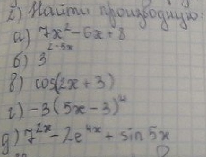 Д)2*7^(2х)*ln7-8e^(4x)+5cos(5x)