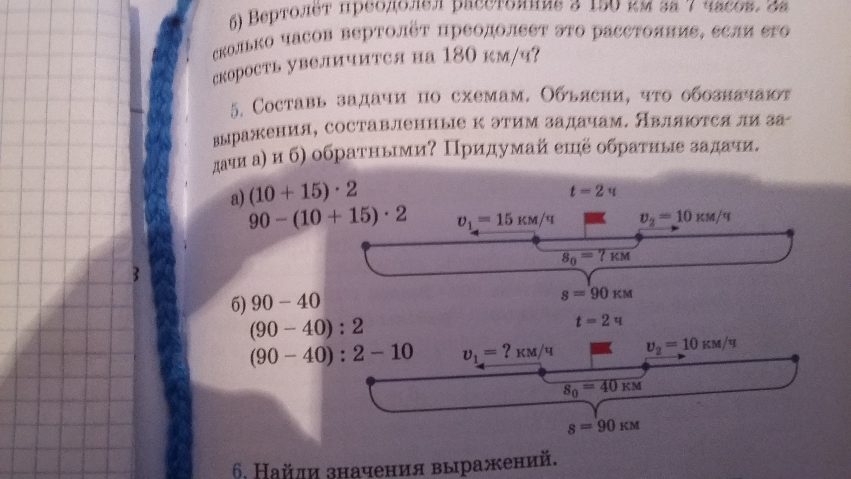 5. а) Две деревни находятся на некотором расстоянии. В противоположных направлениях из деревень выехали велосипедисты. Скорость первого — 15 км/ч, второго — 10 км/ч. Через 2 часа расстояние между ними было равно 90 км. Какое расстояние между деревнями?
