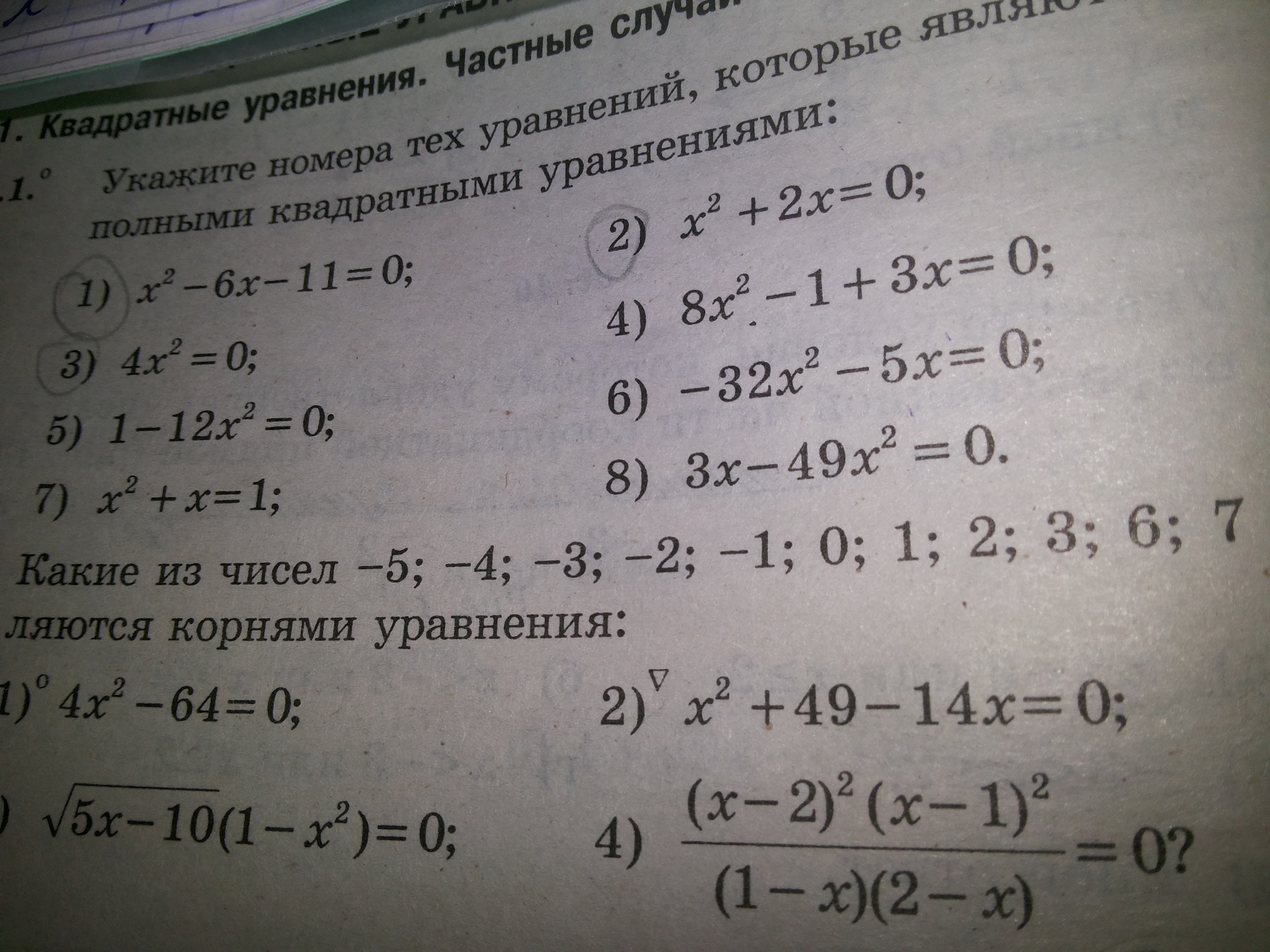Укажите номера тех уравнений, которые являются неполными квадратными уравнениями задания из 8 рремеров там ещё 1 стоит