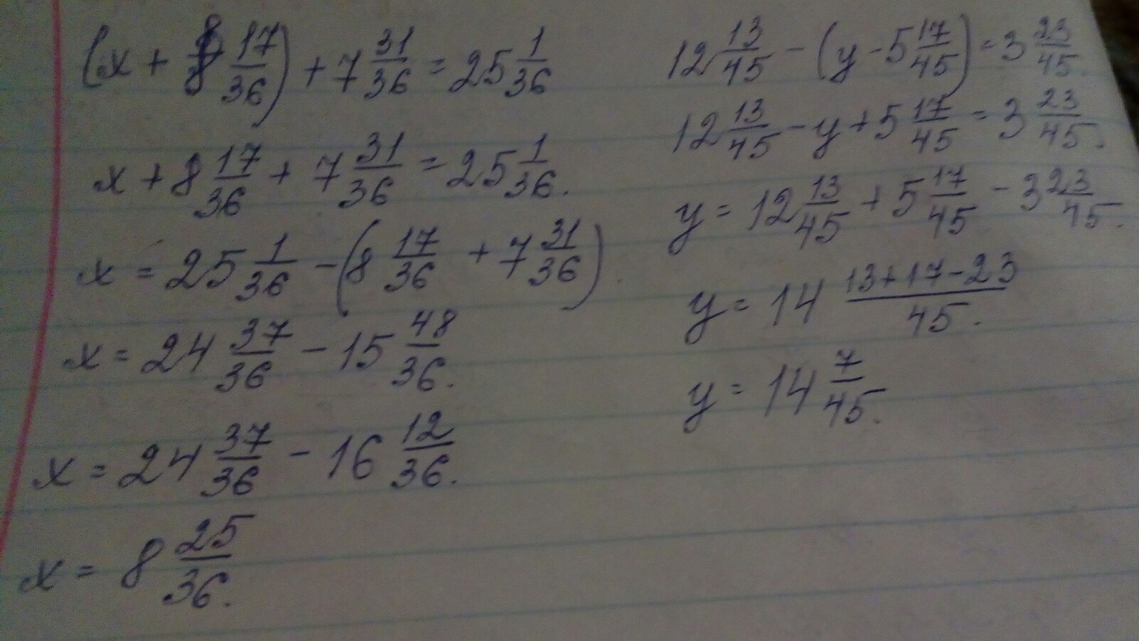 б) 12 13/45 - (y- 5 17/45) = 3 23/45