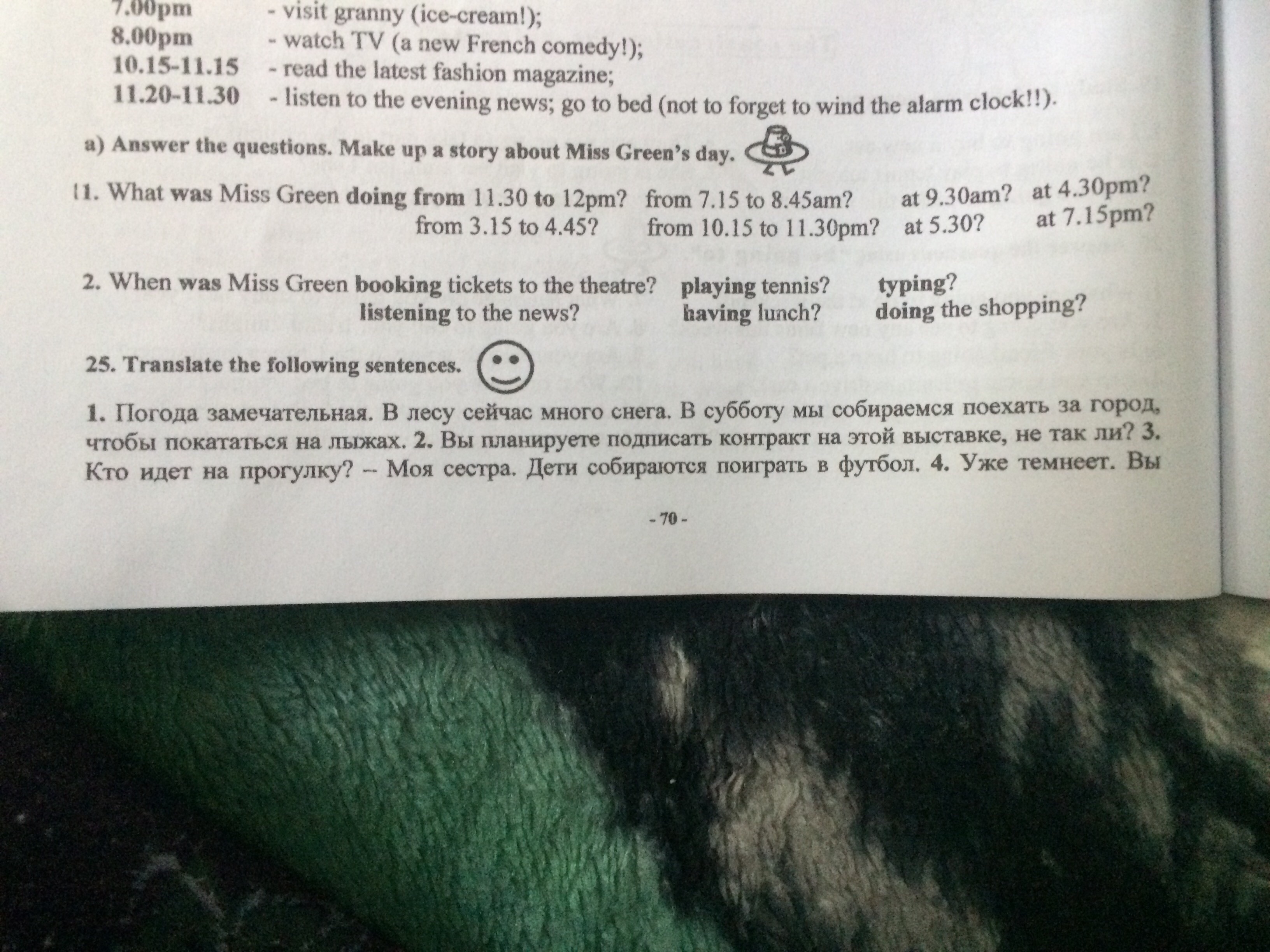 Weather is great. Now in the forest a lot of snow. In Sunday we are going to go out of town to go skiing. You want to sign this contract, is not it? Who is going to walk? My sister. Children's is going to play football. It's getting dark.