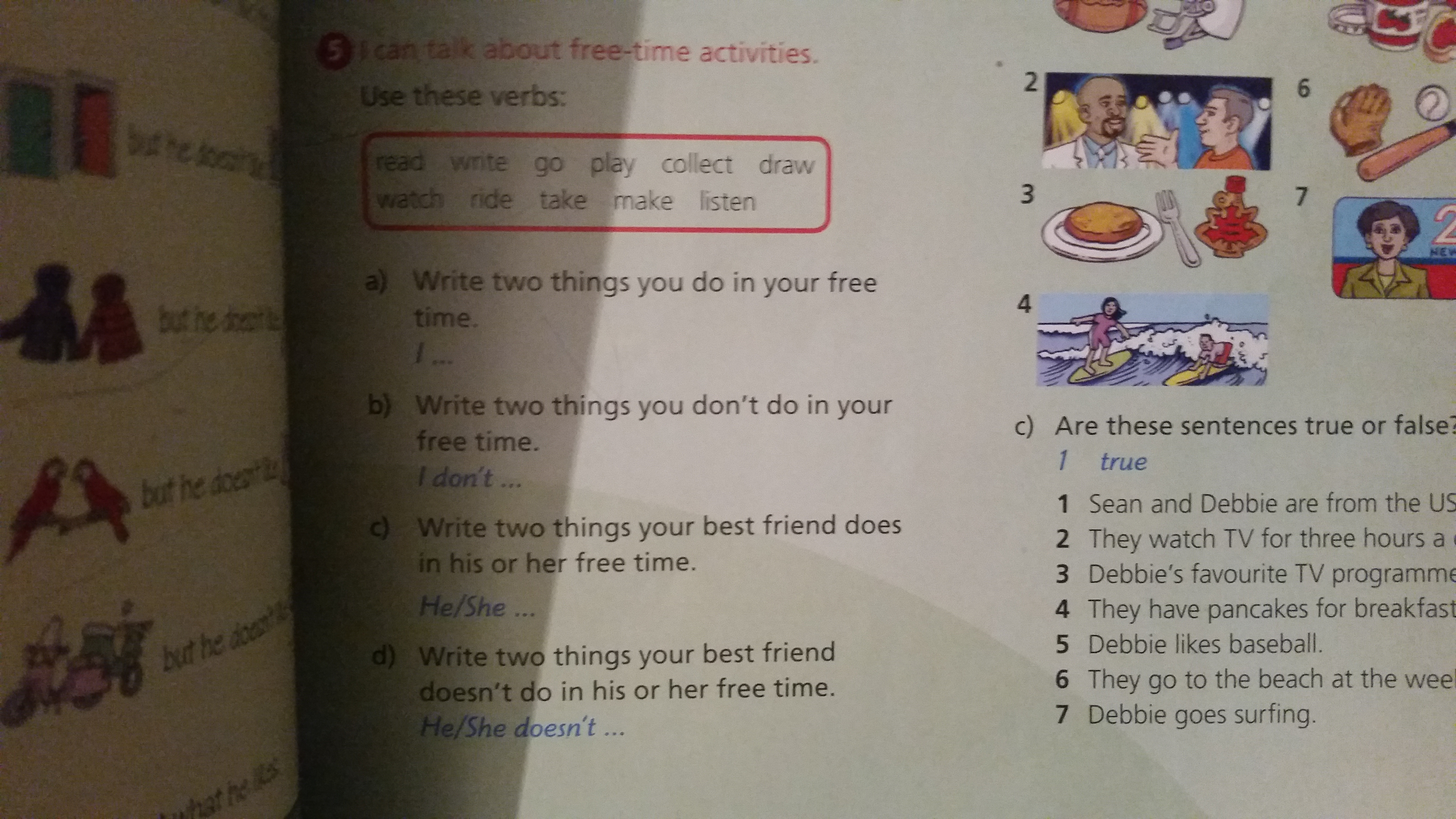a) I listen to music and read books in my free time