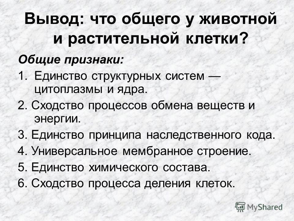 1. Сравните строение растительной и животной клетки, о чем свидетельствует их