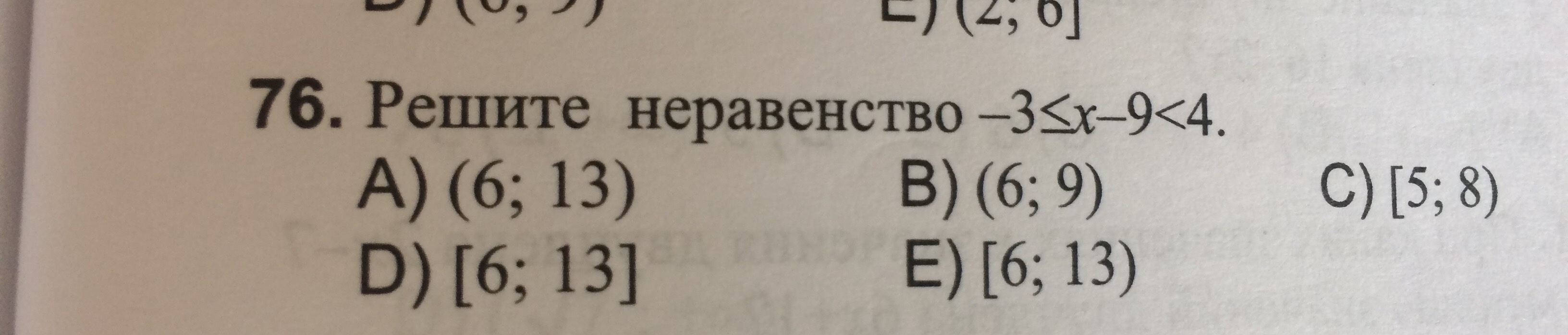 -3leq x-9\6leq x\\x-9 textless  4\x textless  13\\6leq x textless  13\xin[6;13)