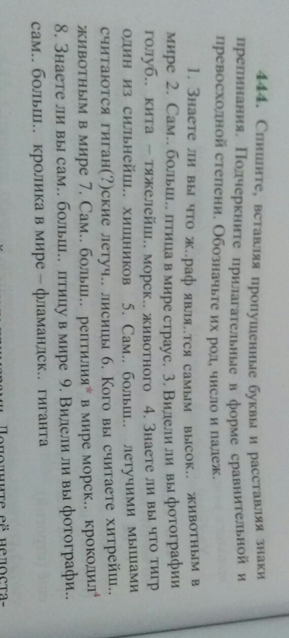 1) Знаете ли вы, что жираф является самым высоким животным в мире? 2) Самая большая птица в мире - страус. 3) Видели ли вы фотографии голубого кита - тяжелейшего морского животного? 4) Знаете ли вы, что тигр - один из сильнейших хищников? 5) Самыми большими летучими мышами считаются гигантские летучие лисицы. 6) Кого вы считаете хитрейшим животным в мире? 7) Самая большая рептилия в мире - морской крокодил. 8) Знаете ли вы самую большую птицу в мире? 9) Видели ли вы фотографии самого большого кролика в мире - фламадского гиганта?